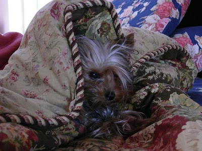 Brought home a boa from Cathy's closet and Ava went crazy. At first I could not figure out why she was just staring at the couch and barking hysterically until I figured out it was the boa. When I let her sniff it, she went crazy, it must be real. I tried to get it back and she ran like the wind with the boa trailing behind her - it was hysterical and luckily I got it back.
